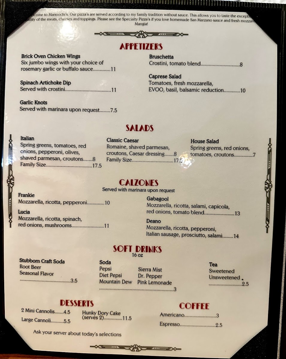 Marioochi’s Pizzeria On The Square Menu (2025 Update)