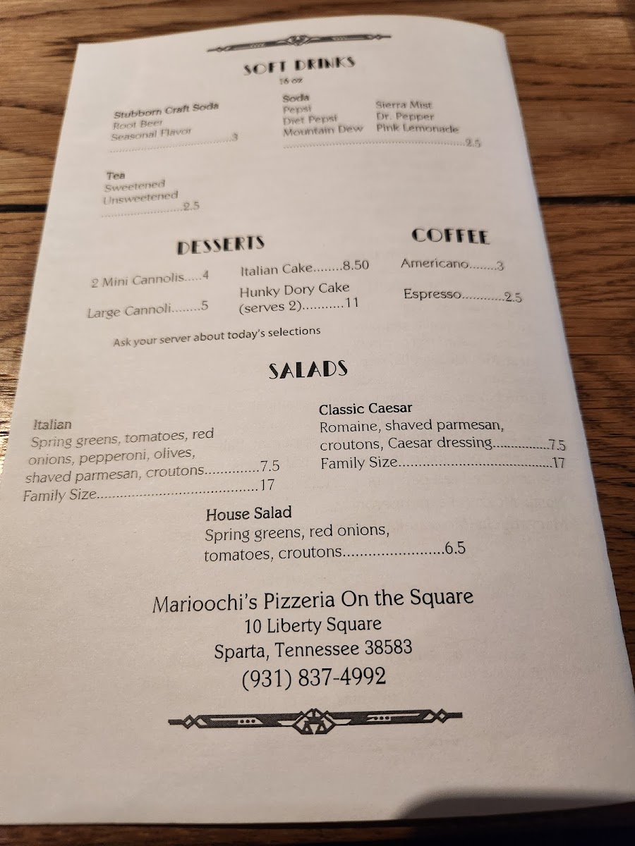 Welcome to Marioochi’s Pizzeria On The Square, a culinary gem nestled in Sparta, TN. This charming eatery is renowned for its wood-fired pizzas, crafted with fresh ingredients and a touch of passion. The menu boasts delectable options like the Meat Me Mozzarella, combining savory pepperoni and sausage, and the sophisticated Bella Mia, featuring gorgonzola and prosciutto.